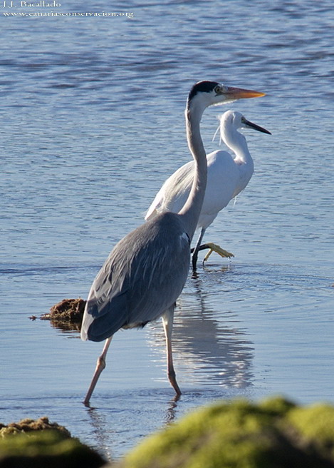 real (Ardea cinerea) y garceta común (Egretta garzetta)