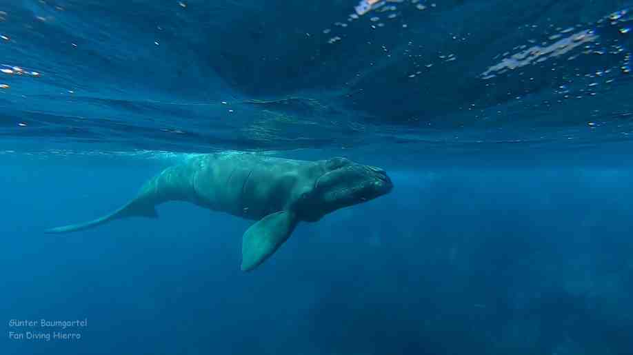se sumerge, la aleta caudal se ve claramente. En Canarias sólo otros