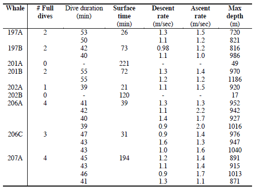 acústica pasiva); y se ha inferido que han buceado hasta 3.195m