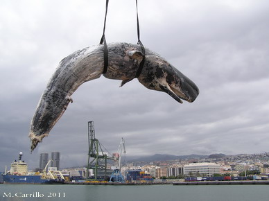 El cachalote Physeter macrocephalus, el cachalote pigmeo Kogia breviceps y el zifio de Cuvier Ziphius cavirostris son las especies más afectadas por los accidentes de colisión en Canarias. |