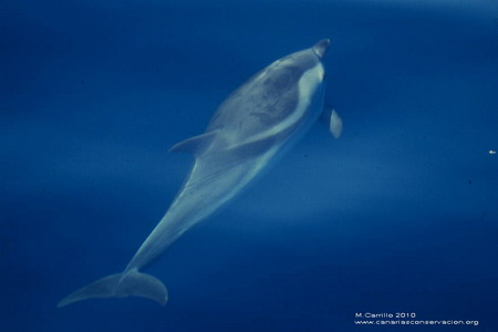 y reproducción para la especie Ante la presencia de embarcaciones no se suelen mostrar tan atraidos como otros delfines. En algunas ocasiones esta característica puede servir para identificarlos a distancia. |