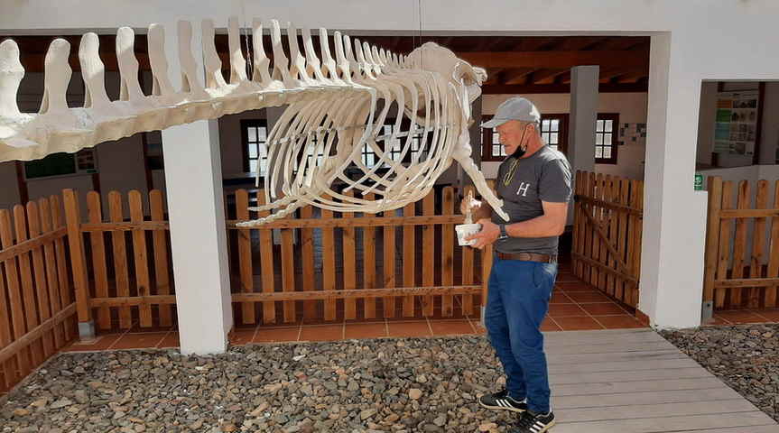 de su ubicación definitiva en la Isla de Lobos, el esqueleto