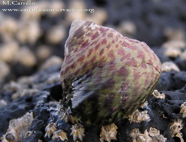 Phorcus atratus Burgao Clase Gastropoda Orden Archaeogastropoda Familia Trochidae Concha cónica de base plana y ligeramente más ancha que alta. De color verde oliva con manchas púrpura. La talla máxima sobre los 35/40 mm. Hábitat: Intermareal superior y medio.