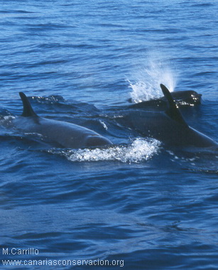 comparación a los calderones. Aleta dorsal falcada y retrasada