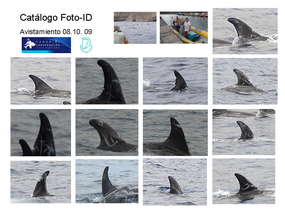 ![]() Las marcas en la aleta dorsal y dorso sirven para identificar a los ejemplares |