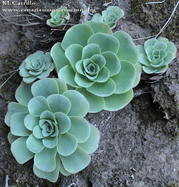 Aeonium aureum Sinonimos: Grenovia aurea Altos de Aguamansa (Tenerife)