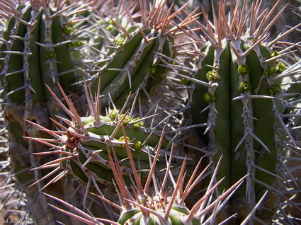 parecidos a los cactus con 8-14 costillas, 2 espinas largas.
