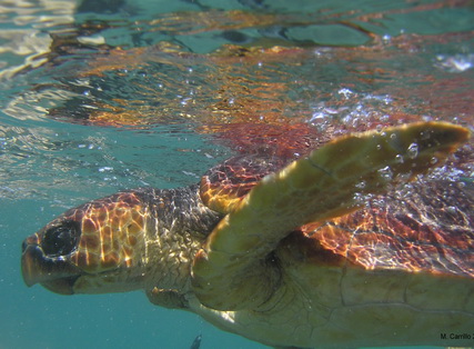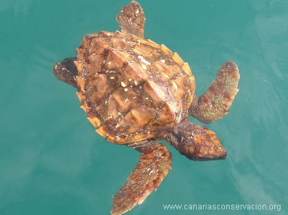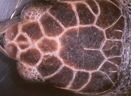 con frecuencia aparecen sobre el caparazón algas y crustáceos.