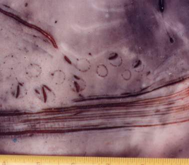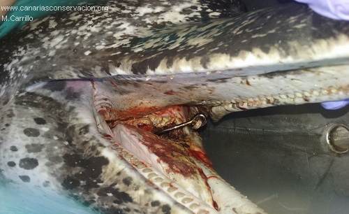de restos de artes y aparejos de pesca o marcas provocadas por estos;