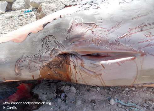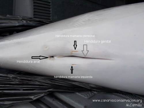 como en los machos de la Familia Ziphiidae y en la falsa orca.